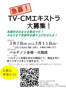 TVCM エキストラ募集のご案内 【3月7日(木) or 3月11日(月) パルテノン多摩】